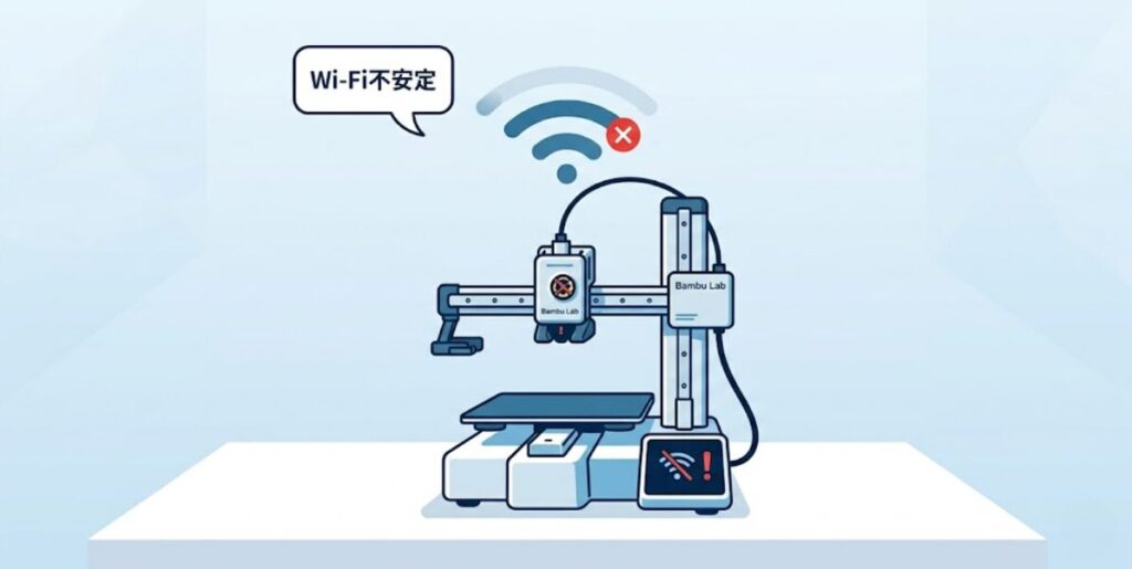 Bambu Studioやスマホアプリからプリンターに接続できない、印刷データの送信が途中で失敗するトラブルです。