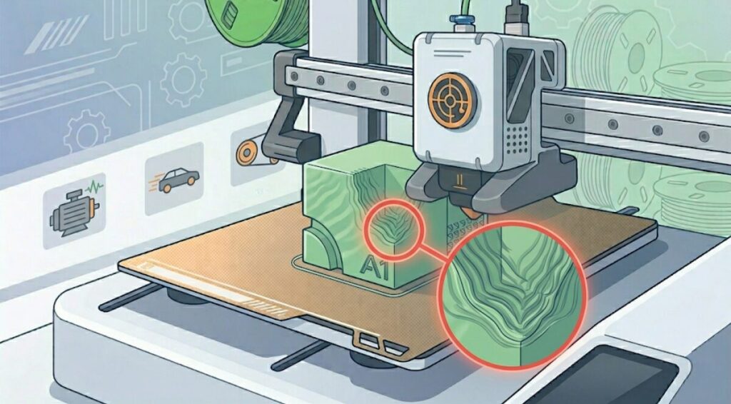 A1 miniは高速印刷が売りだけど、複雑な形状の場合は速度を落とすのが安全策だよ。急がば回れ!
