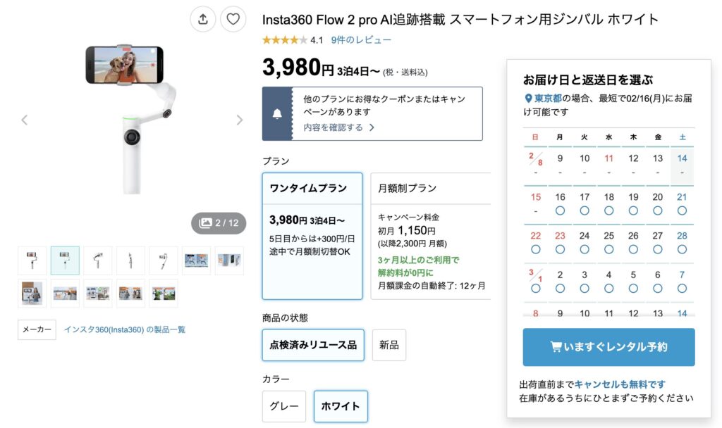 「Insta360 Flow 2 Pro」をレンタルするならココ!