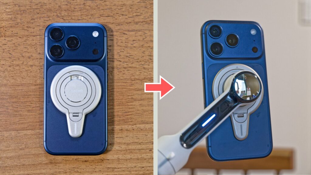 接続が面倒に感じるようだと「ジンバル無しで撮影するか〜」という気持ちになり、少しずつジンバルを使わなくなっていく可能性も。MagSafe対応マウントを使うだけで心理的なハードルを大きく下げられるから、是非試してみて欲しいです!
