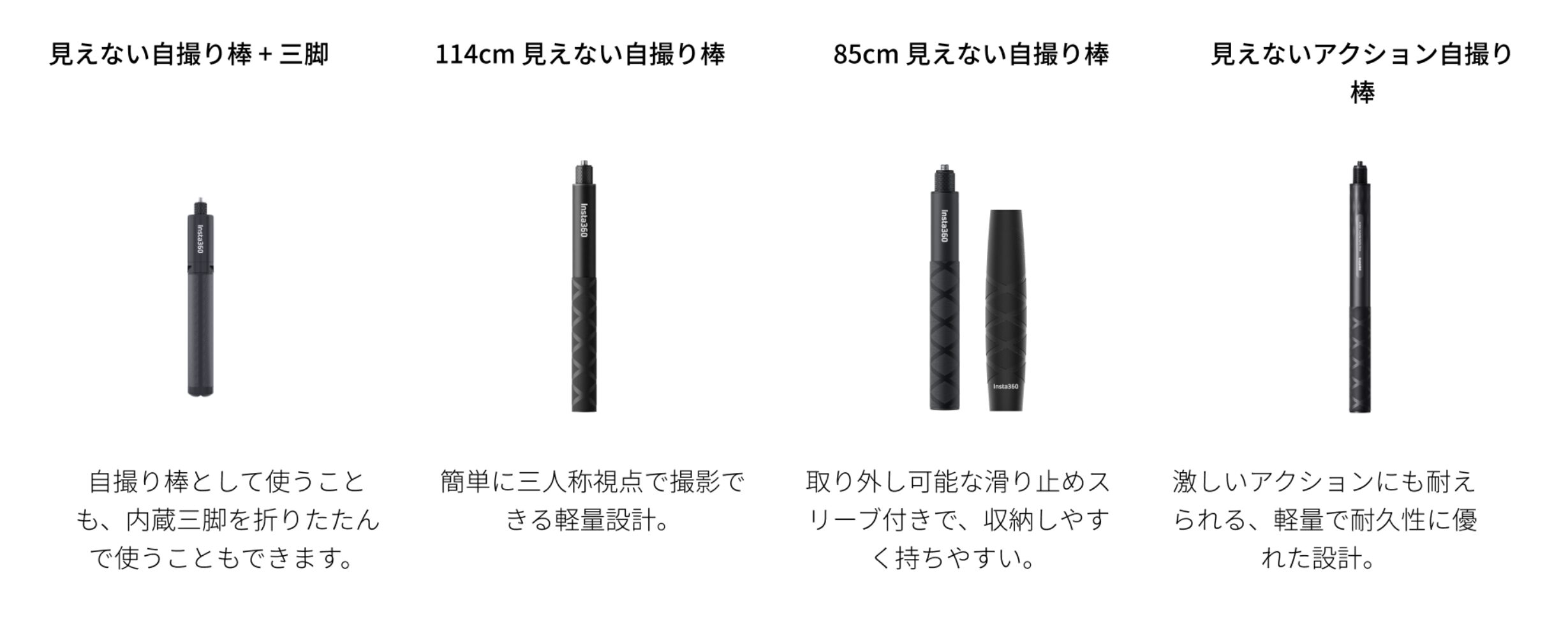 • それぞれの備品が360°カメラ生活において欠かせない理由