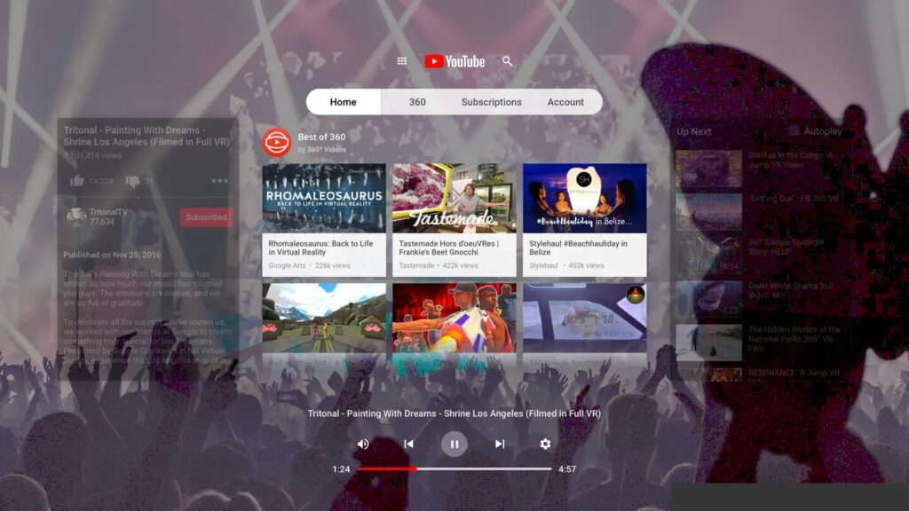 YouTube VRやPrime Video VR、DeoVRを使えば、VR空間に巨大なバーチャルスクリーンを表示して動画を視聴できます。360度動画にも対応しており、まるで映画館にいるような没入感を味わえます。